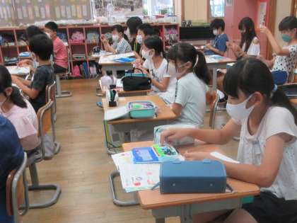 はじめて針を持つ子も多く、説明を真剣に聴いています。