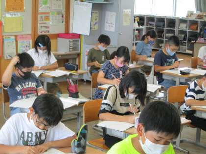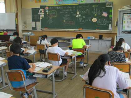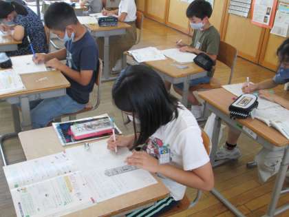 算数の時間では少数の足し算を勉強しています。くらいの位置に気を付けながら問題を解いています。