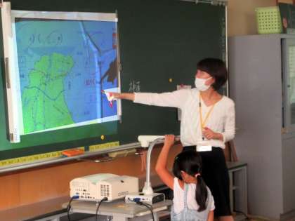 実物投影機を使って、まとめプリントの確かめを行っています。