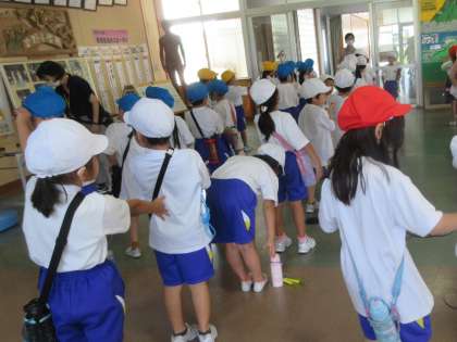 玄関ホールには、ジャンボキンキラ鉛筆と