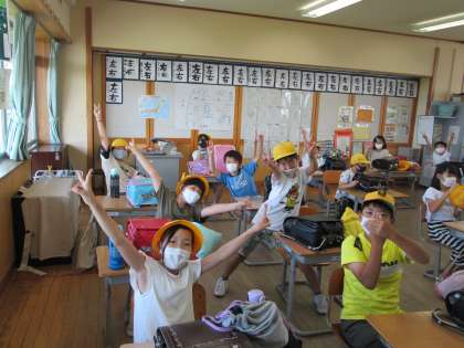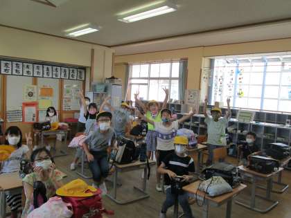 期末テストが終わりました!みんなの頑張りが見られました。終わった後にみんなでがんばったのポーズをしました。
