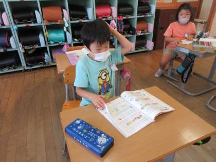 前の時間の授業が終わってすぐに「次算数だから準備しておこう」と準備をしている子供たちがいました。次の時間の準備をしてからゆっくりと休み時間です。