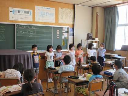 2年生で学習した曲の中から、自分が歌いたい曲を選んで歌のコンサートを行いました。一人一人どんな風に歌いたいか考えながら、一生懸命で歌っている様子がみられました。