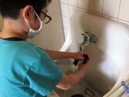 家庭科で学習した 清掃を実践。