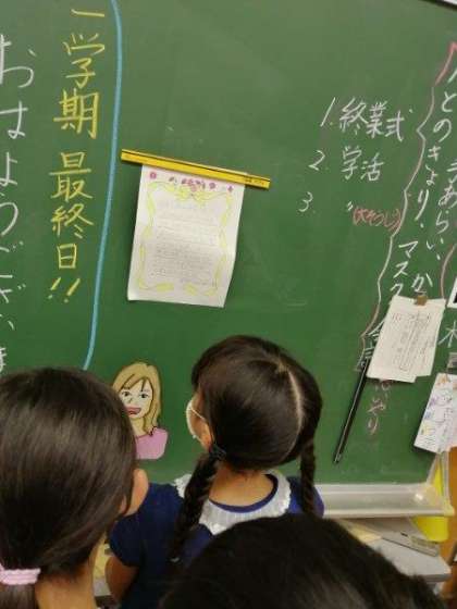朝、給食室から、お手紙が届きました。昨日、代表の子供たちが、「いつも美味しい給食をたくさん食べて、笑顔になりました…。」お手紙を書いたお返事でした。温かい気持ちで一学期最終日を迎えることができました。