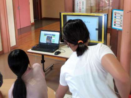 5年生が のぞきこんでいるのは