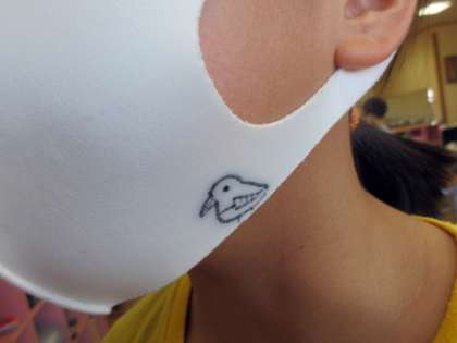 雷鳥が好きな5年生が自分のマスクが分かるように、手書きでマークをつけていました。
