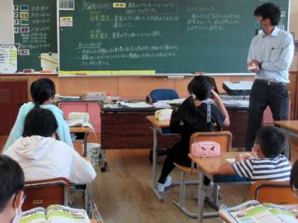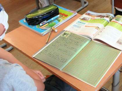 社会科のノートには、課題と事後評価の記入を意識づける「こつこつスタンプ」が押してあります。