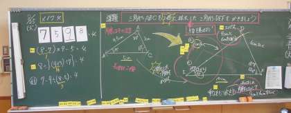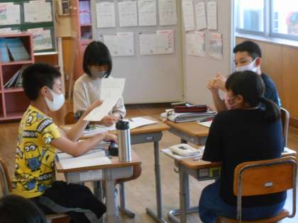 自分が考えた拡大図のかき方をグループで交流しました。様々なかき方がありますが、どれも合同な図形のかき方を使っていることにも気付きました。