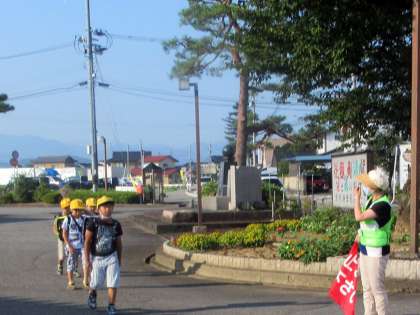 暑い日が続きますが、今日も地域の方に登校を見守っていただいています。