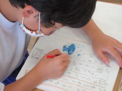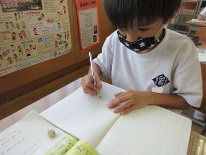 「ミリーのすてきなぼうし」という話の中で、主人公のミリーが想像の帽子をかぶります。そのことに因んで、自分の想像の帽子を絵に描いてみました。宇宙の帽子、お金の帽子、空を飛べる帽子、、、、たくさんのアイディアで溢れていました。