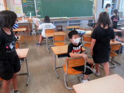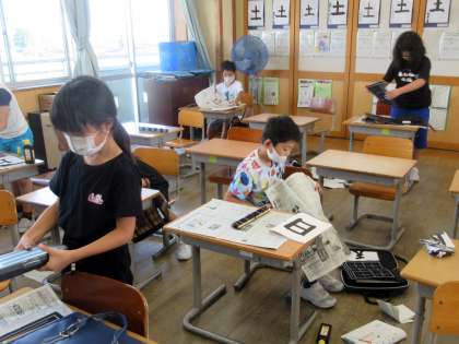 今日は書写(毛筆)があります。