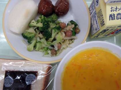 今日の献立に「かぼちゃポタージュ」があります。