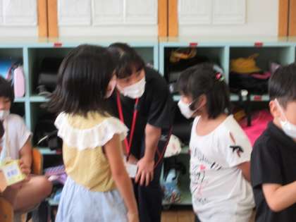 大学生さんが来校されていました。「誕生日はいつですか。」「好きな食べ物は何ですか。」と興味津々の子供たちです。