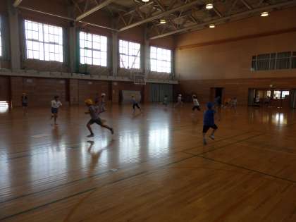 遊びごとに係を作り、お楽しみ会をしています。今日は第一弾で、けいどろと氷鬼をしました。