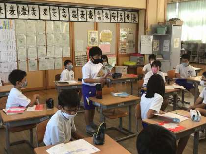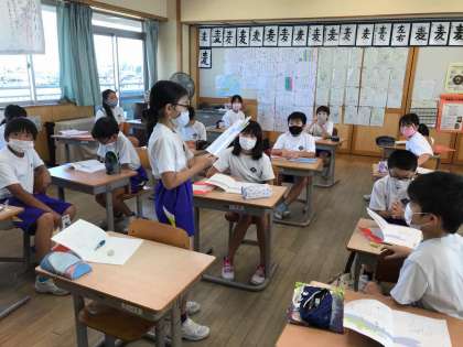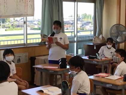 国語科の授業で、始めの詩からイメージできることを音読の仕方を工夫して表現しました。読みの緩急に気をつけながら工夫して読みました。