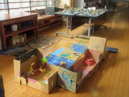 教室横に共同作品「ペタパタひらくと」が飾ってあります。