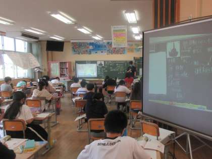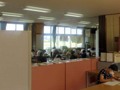 スクールサポートスタッフが、プリントのまるつけをしています。