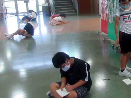 今日も6年生がミニスケッチブックをもって校舎内で描いています。