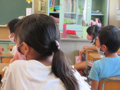 コロナウイルスの影響で、今日が今年度初めての読み聞かせの日でした。子供たちの目は真剣です。