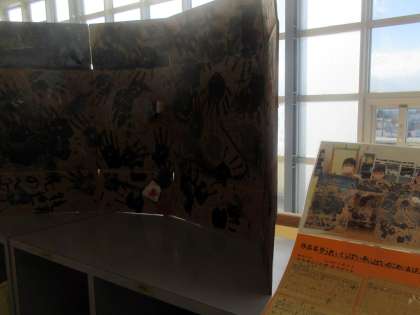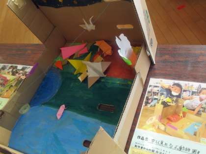 3年生の作品が、解説つきできれいに飾られていました。