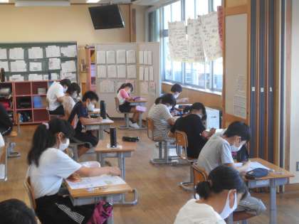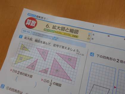 今日は、拡大図と縮図のテストをしました。学習の成果を出せたでしょうか?