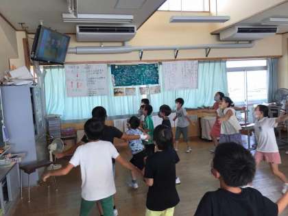 げんキッズわくわくトレーニングが今日から始まりました。行間休みにテレビ放送で流れるダンスを踊っていました。