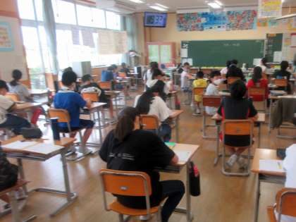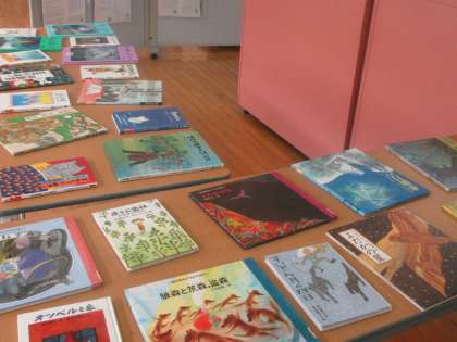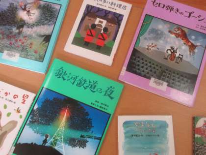 宮沢賢治の作品が教室の横にたくさん置いてあります。