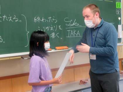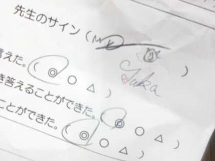 きいたり、はなしたりなど 3つの項目で合格をもらったので、ALTと英語専科の先生からサインをもらいました。