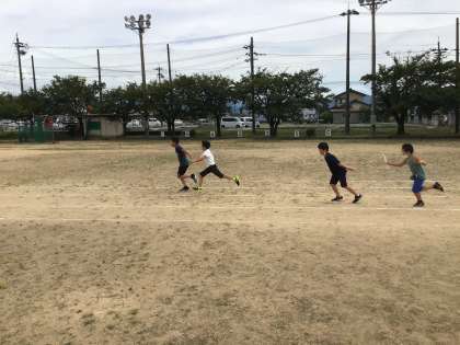 昼休みに、自発的にリレーのバトンパスの練習をする姿が!