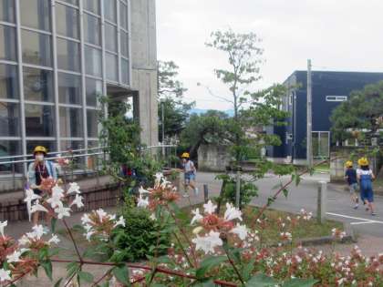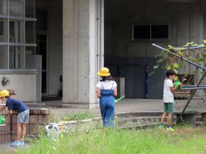 登校してすぐに花壇や学級園の水やりをしている子供がいます。