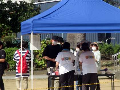 検温、マスク、消毒チェック完了の保護者の方に、シール。