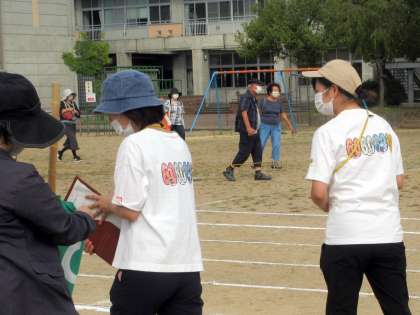 PTAの計時ボランティアにも集中してスタートを待ちます。