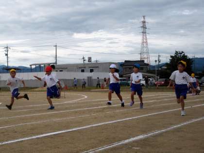 わくわくどきどきしながら、1年生みんなが50mを駆け抜けました。何と、フライング0!一生懸命に走る姿が輝いていました。