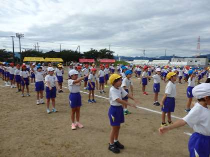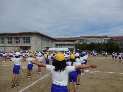 運動委員会の5,6年生の動きに合わせて、大きく体を動かしました。