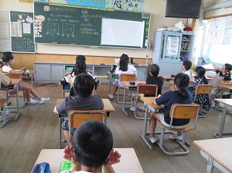 観察結果を持ち寄り結果を確認しました。映像を見て星の動きを振り返っています。