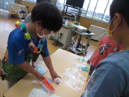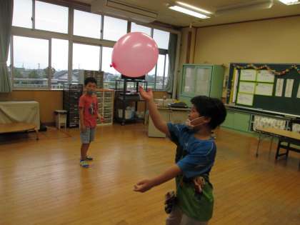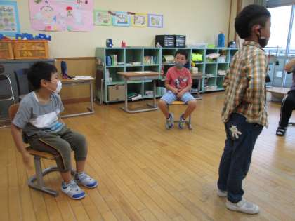 7月・9月生まれの友達の誕生日会を開きました。爆弾ゲームは、今回初めて行うゲームです。時間になったとき、爆弾(ボール)を持っていた人は、ものまねを披露しました。手作り誕生日プレゼントも大喜びでした。