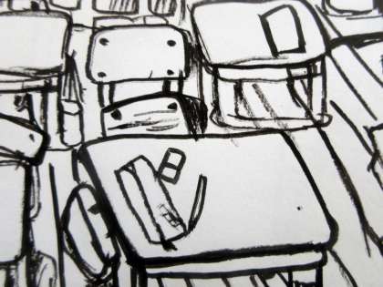 6年生教室のミニスケッチブックに、割り箸ペンで描いたスケッチがありました。