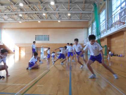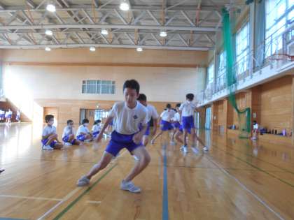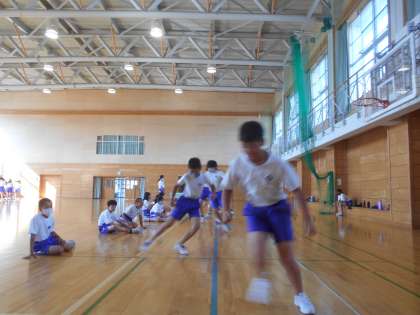 スポーツテストに挑戦しました。今日は、反復横跳びと上体起こしです。(写真は反復横跳びのみです)姿がぶれるほど、素早い動きです。
