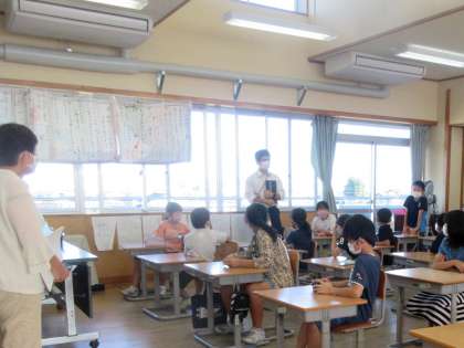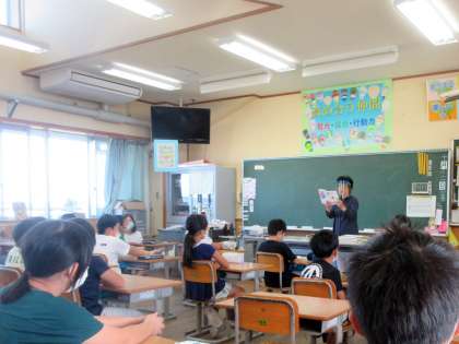 4年生。 1組は 10分で読める話「ライオンと子犬」 2組は 「くらやみのぞう」