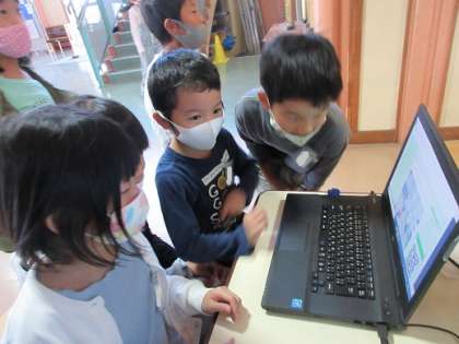 エントランスホールにあるパソコンで、宮野小学校のホームページ確認していました。