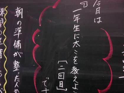 朝、1年生に「まごころ」を教える「特別たいこげんキッズ」が行われるようです。