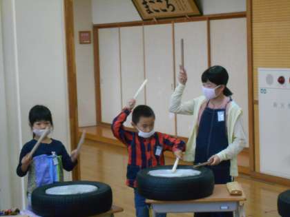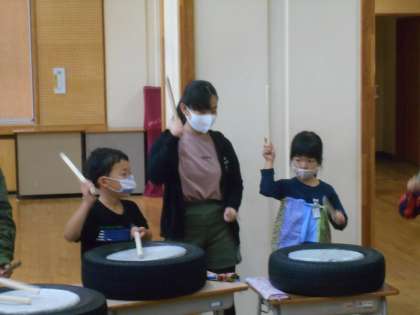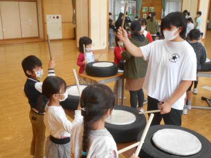 1年生に和太鼓曲「まごころ」を教えています。今日は2回目。