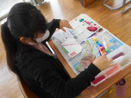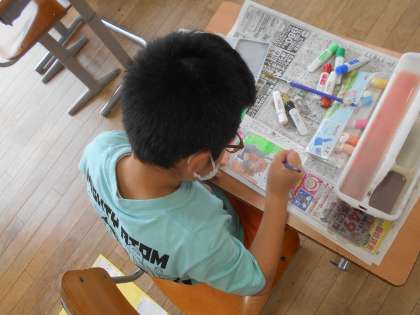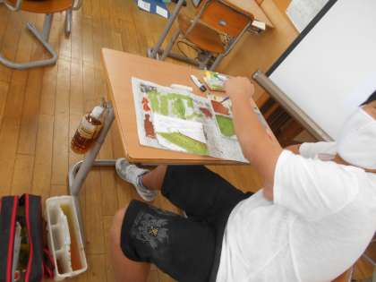 色付けを始める人もいます。どこをどのように色付けていこうか考えながら、作品づくりに取り組んでいます。