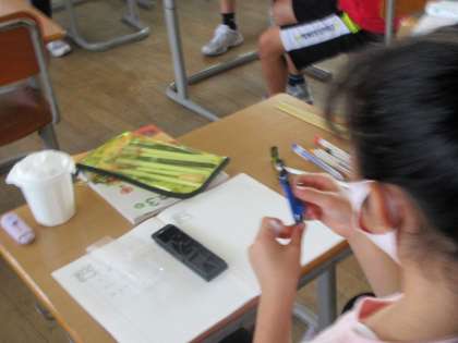 新品のコンパスを箱から取り出し、じっくり観察(?)しています。