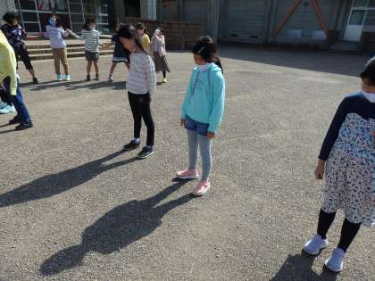 理科の「太陽とかげ」の学習で、今日は外に出てかげつなぎをしました。
