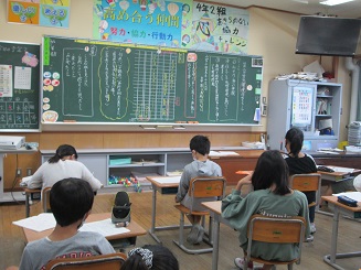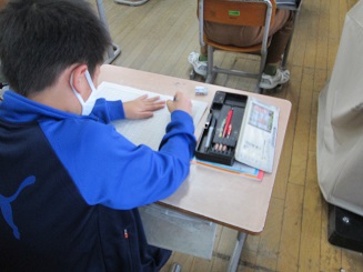 自然についての作文を書いています。作文の決まりを守って正しく書くことができるように気をつけながら取り組んでいます。えんぴつの持ち方ももちろん意識しています。