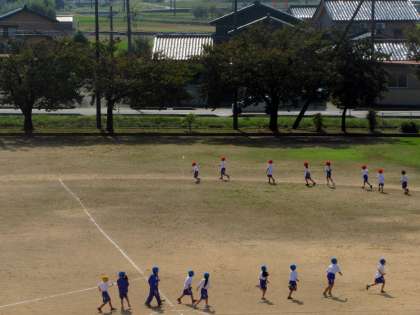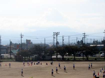 グランドで体育。 青空の下 気持ちよさそうです。