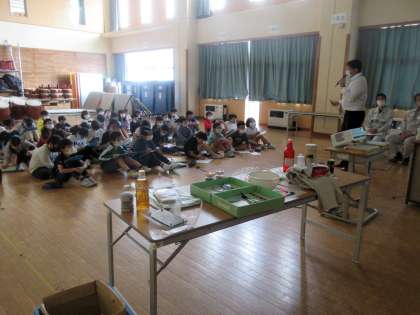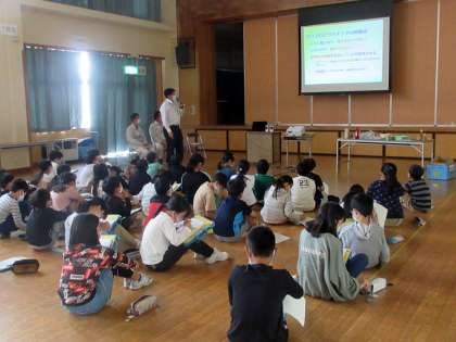 富山市環境部環境センターの方を講師に、「3R推進スクール」を開催しました。3Rとは何かについて、具体的にどんな実践ができるかについて話を聞いたり、環境に優しい製品を見せていただいたりしました。