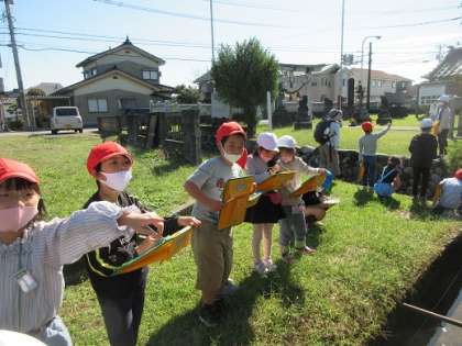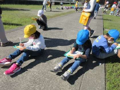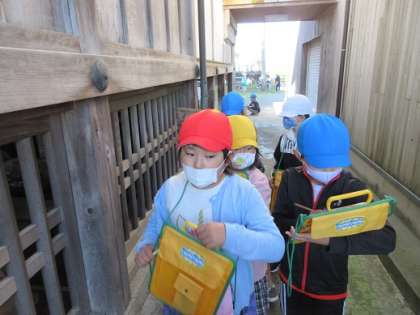 まずは熊野神社へいきました。初めて来た子供たちも多く、たくさん観察したりメモをとったりと進んで学習している姿が見られました。